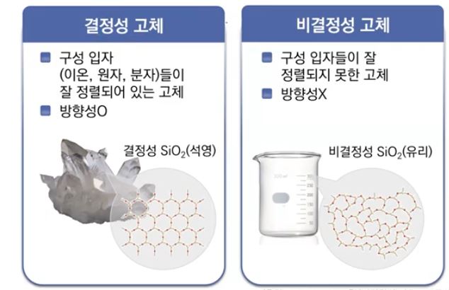 ⊙ 그런데 같은 석영 고체라도 비결정성 고체가 되면 방향성이나 규칙성이 없는 입자 배열이 된다.