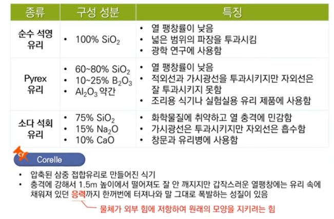 나. 비결정성 고체인 유리의 종류와 특징