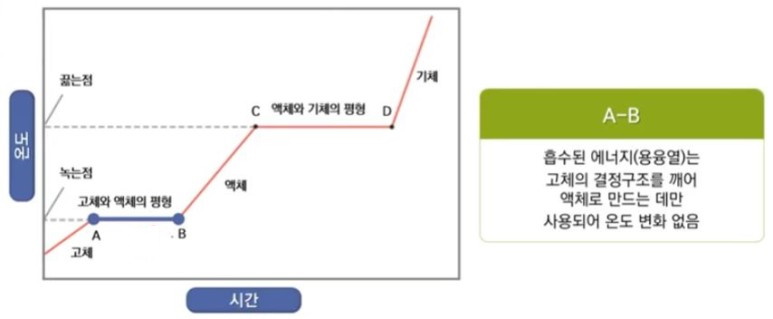 ▣ 위 그림에서 빨간색 화살표는 열을 흡수하는 흡열과정을 나타낸다. 열을 가해줘서 얼음