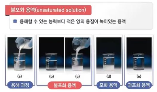 ▣ 불포화 용액은 용해할 수 있는 능력 보다 적은 양의 용질이 녹아 있는 용액을 말한다.