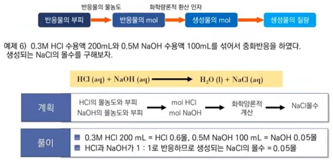 다. 몰 농도를 이용한 용액의 화학양론