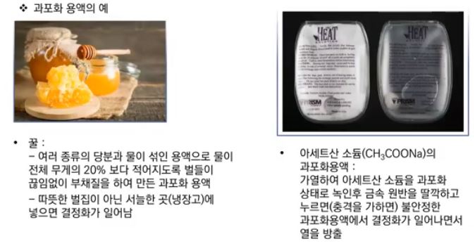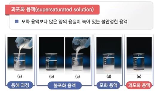낮아져도 높은 용해도를 유지할 수 있다. 이를 과포화용액이라고 하며 과포화용액은