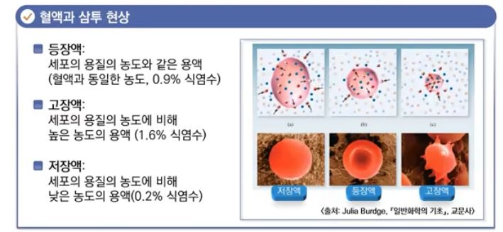 터지는 용혈현상이 나타난다. 삼투현상도 마찬가지로 물의 이동에 따라 나타난다.