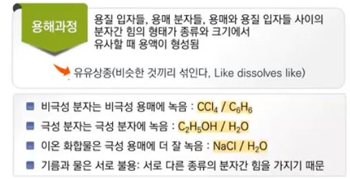 를 방출하는 과정을 즉 용질과 용매들이 섞이는 용해과정이 일어 나는데 이 때 결합을