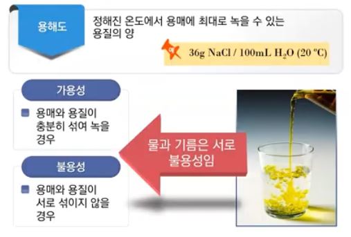 ※ 가용성 : 용매와 용질이 충분히 섞여서 서로간에 골고루 균일하게 섞일 수 있는 즉, 용액