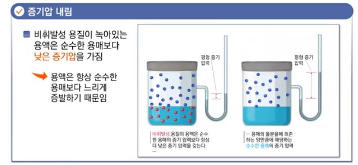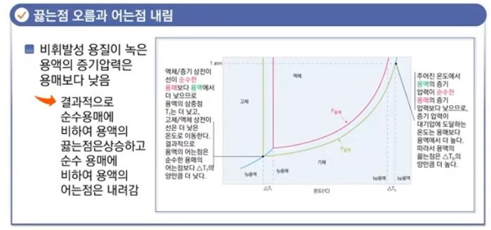 ▣ 증기압이 "1"일 때 온도가 끓는 점이라고 했는데 용액은 증기압이 낮아지니 끓는 점이 높아진다.