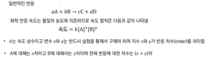 ※ 속도의 법칙은 농도와 반응속도만 나타내는 것이지 시간이 얼마 지났을 때 반응물이