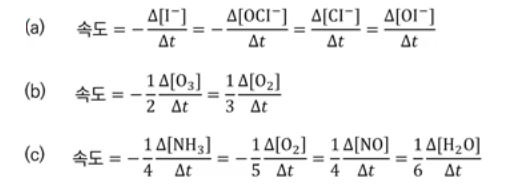니아는 계수가 2이므로 1/2로 나누어 반응속도를 산정한다.