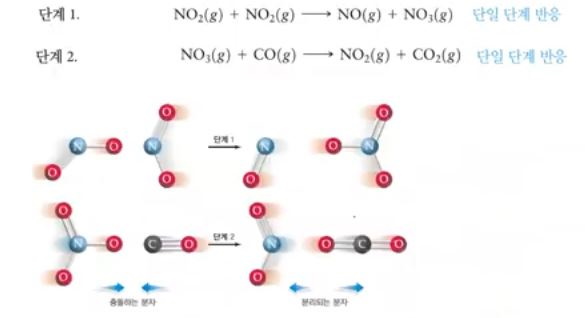 ▣ 단계 1에서는 NO2와 NO2가 충돌하여 반응을 하고 단계2는 단계1에서 나온 NO3라