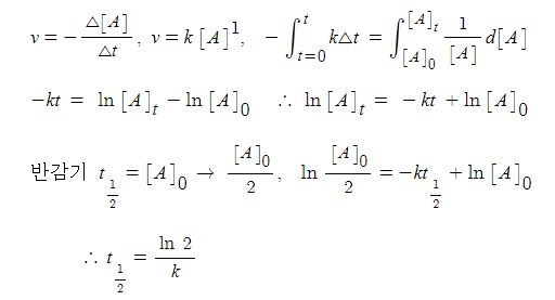 ※ 1차 반응이 중요한 것은 대부분 화학반응 물질의 농도를 대부분 ln으로 표현한다.
