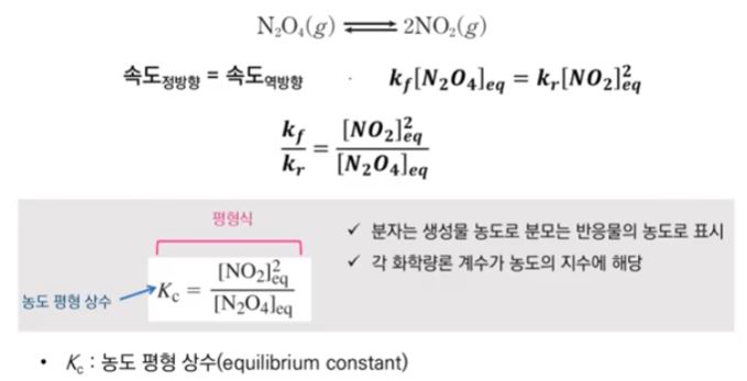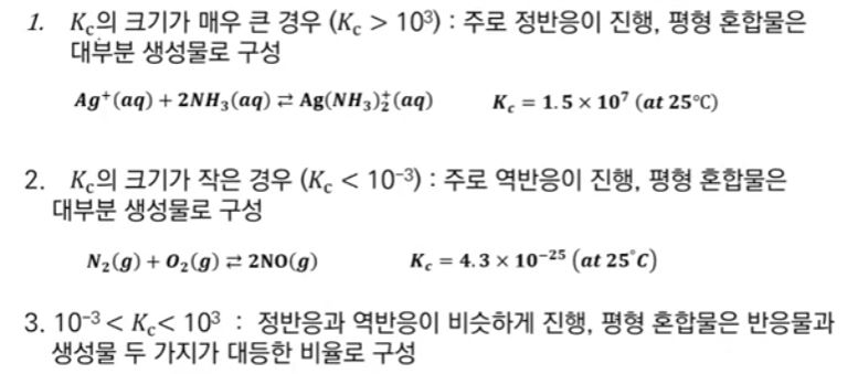 ※ Kc 를 평형상수라고 부를 수 있는 이유는 반응물 농도와 생성물의 농도는 변하지 않으므로 일정한 값이 된다.