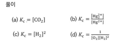 ⊙ 평형 상수식의 평형 농도 자리에 순수한 고체나 액체는 "1"을 사용하는 것이므로 식에 나타나지 않는다.