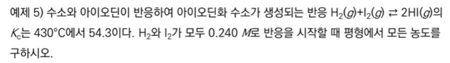 [평형상수를 이용한 평형농도 계산]