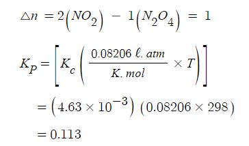 ※ 일반적인 경우 압력 평형상수는 농도 평형상수에 RT의 델타n승의 곱으로 표현한다.