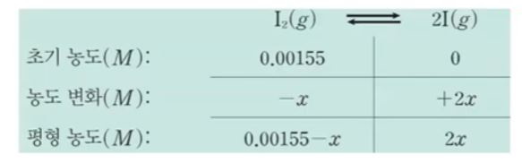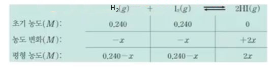 생성물의 농도 변화량을 x를 사용하여 표시