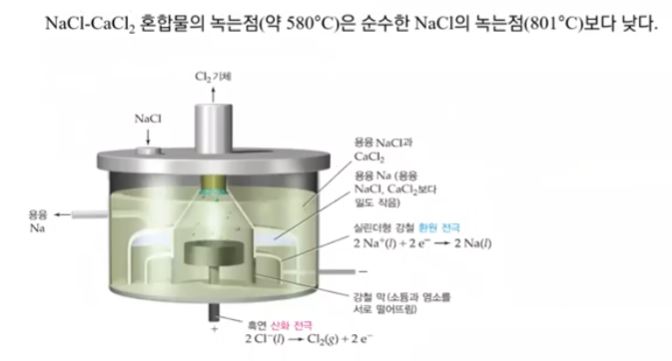 낮으므로 특정 혼합물을 넣어서 NaCl과 염화칼슘 혼합물을 만들어서 산화 · 환원 반응