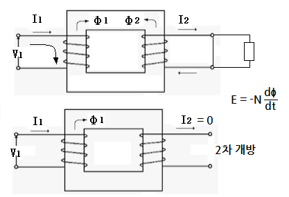 코일에도 자속이 발생시키므로 2차측에 전류 I2가 흐르게 된다. 2차측 전류
