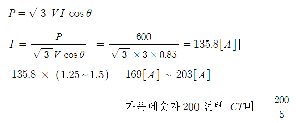 1) CT비 선정 (정격 1차 전류 선정)