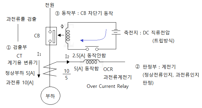 ⊙ 검출부 : 과전류, 과전압, 부족전압 등 전기신호를 검출하는 것으로