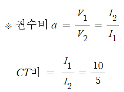 ▣ 변류기의 변류비(CT비)가 10/5라고 한다면, 정상전류 전선에 전규가 5[A]가 흐른다면