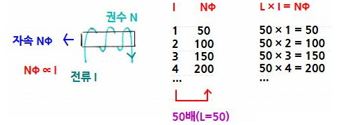 이 NΦ값은 전류 I와 비례관계이다. 즉, NΦ ∝ I 이다.