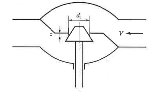 ② 글로브 밸브 (globe valve) : 다음 그림의 글로브 밸브에 있어서도 x/d1이 커질수록 ζ는 작아지지만 완전히 열었을 때